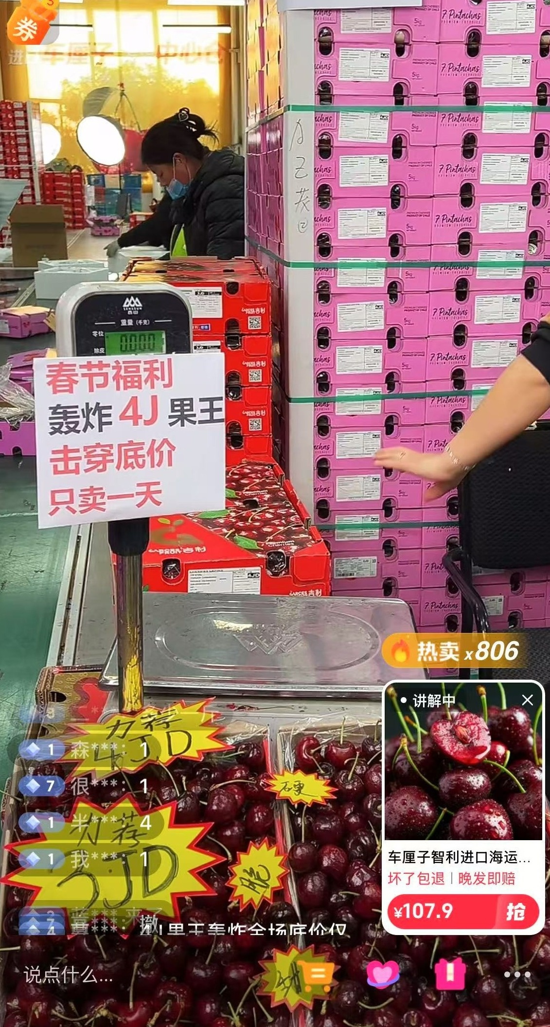 车厘子直播间喊出“地板价”,从业者:今年品质参差不齐,十斤车厘子利润5-10块钱